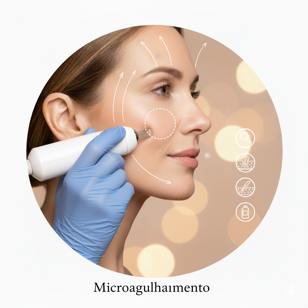 Procedimento que utiliza microagulhas para estimular a produção de colágeno e elastina, melhorando cicatrizes, manchas, linhas finas e a textura da pele, deixando-a mais firme e uniforme.