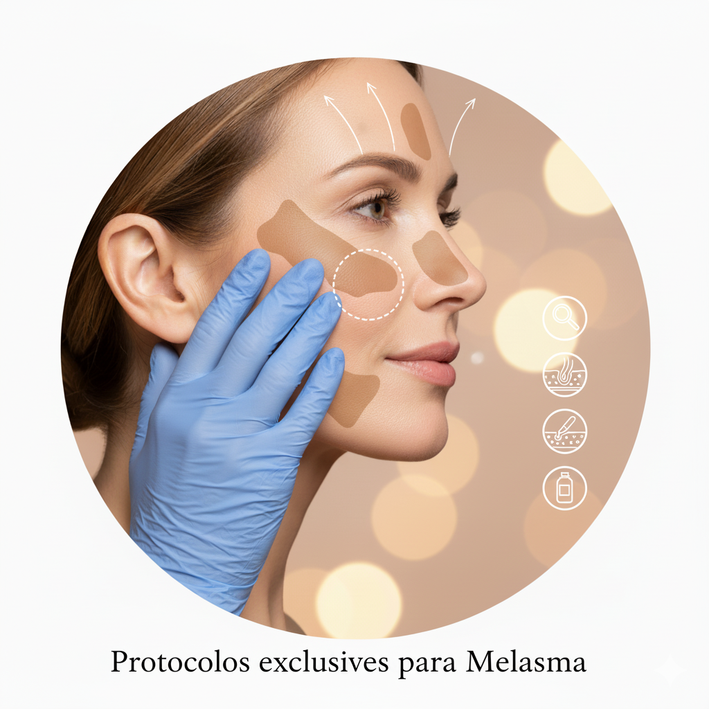 O melasma é caracterizado por manchas escuras na pele e exige um tratamento contínuo e integrado. O objetivo não é curar, mas sim controlar as manchas, clarear a pele e impedir que elas se espalhem ou escureçam. O protocolo ideal é sempre personalizado e combina diferentes abordagens.