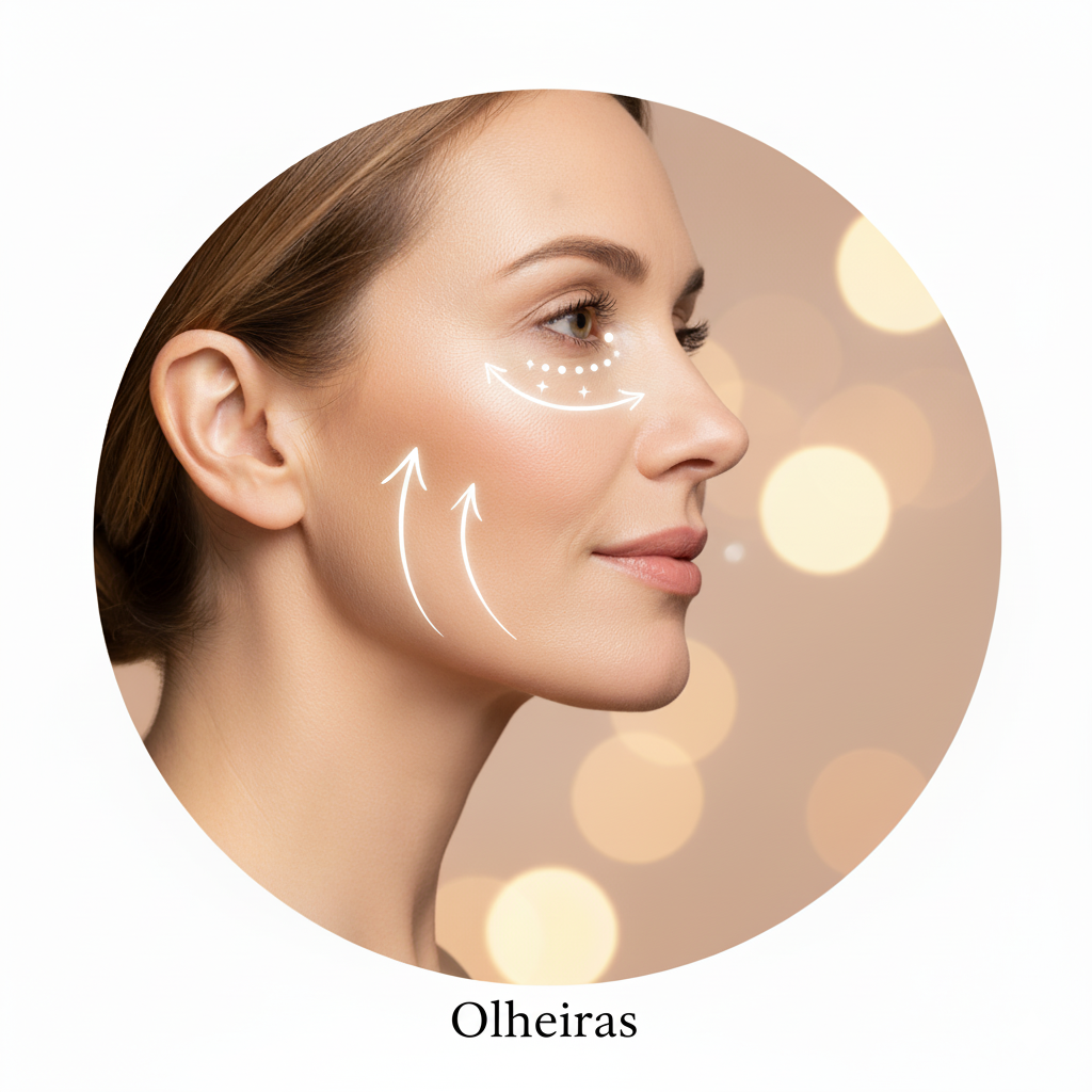 Reduz o aspecto de cansaço, preenchendo o sulco abaixo dos olhos.