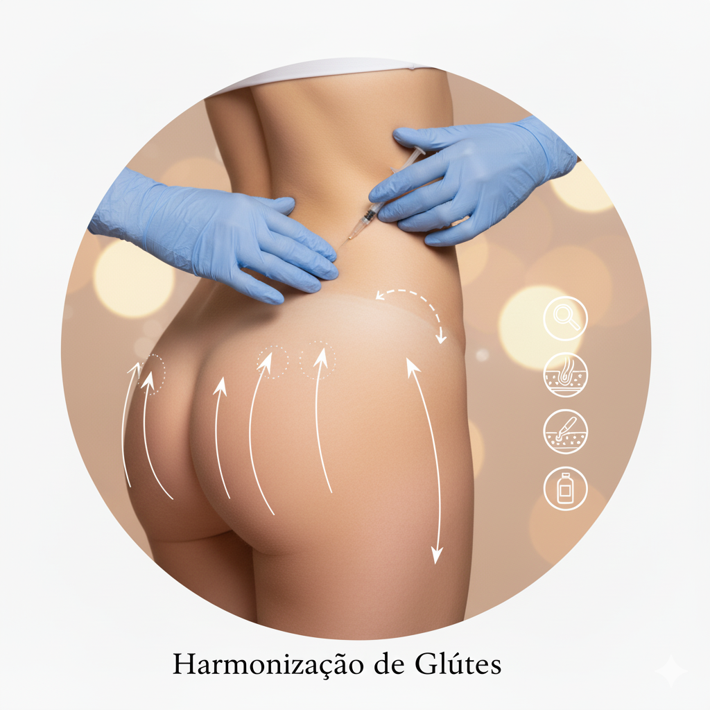 A harmonização de glúteos é um procedimento estético que utiliza injetáveis, como bioestimuladores de colágeno e ácido hialurônico, para esculpir e dar volume à região dos glúteos.