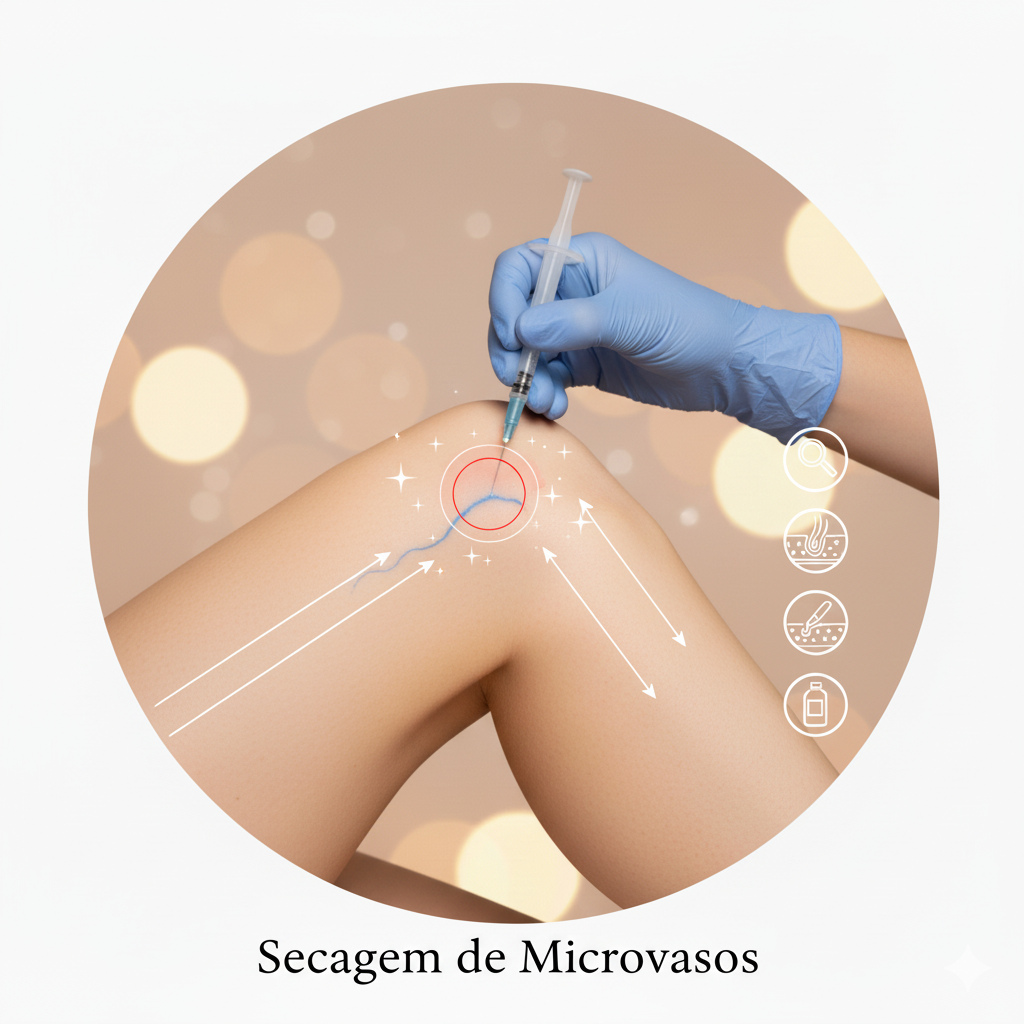 A secagem de microvasos, ou escleroterapia, é um procedimento estético injetável para eliminar aqueles pequenos vasinhos visíveis, principalmente nas pernas.